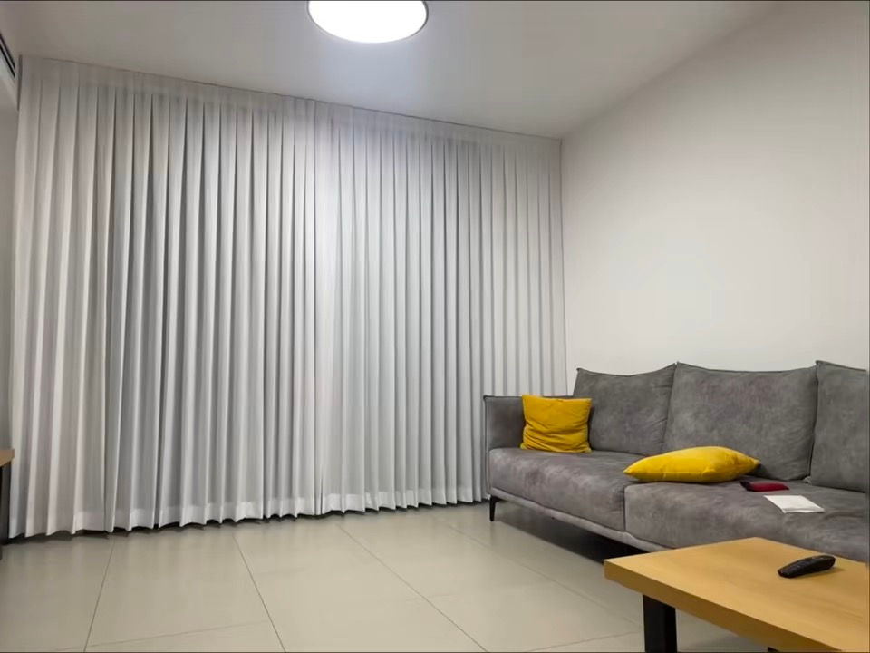 כל וילון נתפר באהבה ובדיוק מבדי פשתן וקרפ איכותיים, בגוונים רכים של בז׳ לבן ואפור.